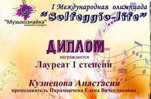 I Международном олимпиаде "Solfeggio-life" и получила диплом лауреата I степени.