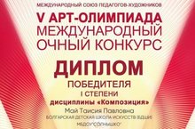 В зимние каникулы ученица 1 класса художественного отделения Май Таисия участвовала в Международном конкурсе и получила диплом победителя I степени.