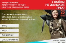 Дан старт Республиканскому патриотическому конкурсу заметок в социальных сетях «У Войны не женское лицо»⠀Конкурс посвящен 75-летию Победы в Великой Отечественной войне и направлен на вовлечение населения Республики Татарстан в разработку и создание позитивного контента, ориентированного на нравственно-патриотическое воспитание молодежи, сохранение памяти о женщинах – участницах Великой Отечественной войны.⠀Организаторами конкурса являются Государственный Совет Республики Татарстан, объединение женщин-депутатов «Мэрхэмэт – Милосердие» и Молодежный Парламент при Государственном Совете Республики Татарстан -
