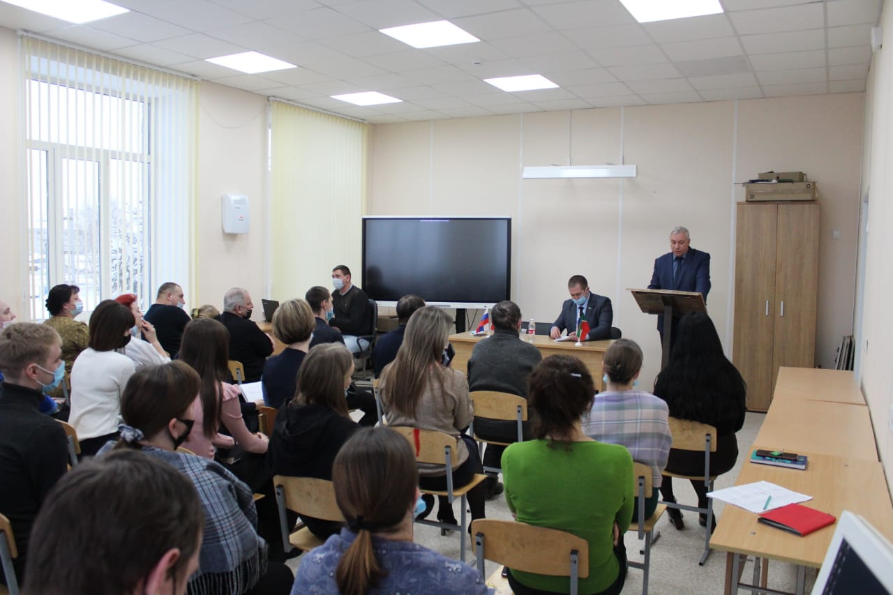 Опубликовано: 26.01.202226 января 2022 года в Спасском техникуме состоялось отчетное собрание по итогам работы за 2021 год. На собрании выступил директор техникума С.В.Рыжев и доложил о результатах по основным видам деятельности. Также на собрании присутствовал руководитель исполкома Спасского района В.А. Осокин. Он ознакомил коллектив с динамикой важнейших показателей социально-экономического развития Спасского района, ответил на вопросы сотрудников техникума.