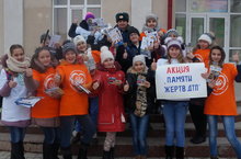 19 ноября 2014 года прошла акция, посвящённая "Всемирному дню памяти жертв ДТП". Ребята - активисты Дома детского творчества с госавтоинспектором отделения ГИБДД Фасхутдиновой З.Г. прошли по улицам города с плакатами, раздали тематические буклеты, светоотражающие браслеты, магниты, календари, листовки водителям и пешеходам в знак предупреждения дорожного травматизма, а так же провели беседу для всех воспитанников объединений ДДТ и раздали памятные буклеты и блокноты.