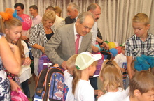 163 первоклассника нашего района переступят порог своих школ, 89 первоклассников присутствовали на празднике, которым при входе в зал были одеты футболки первоклассников, для них приготовлены портфели, школьные принадлежности, спортивные костюмы.