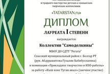 Муниципальное бюджетное образовательное учреждение дополнительного образования «Станция детского (юношеского) технического творчества «РЕГАТА»» Спасского муниципального района Республики Татарстан /Татарстан Республикасы Спас муниципаль районының өстәмә белем бирүче «РЕГАТА» балалар (яшүсмерләр) техник иҗат станциясе» муниципаль бюджет учреждениесе.