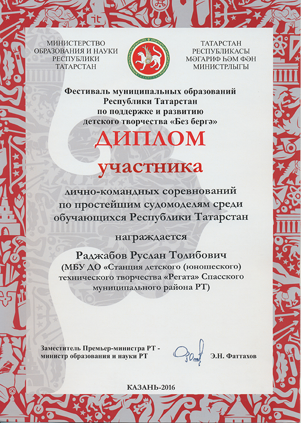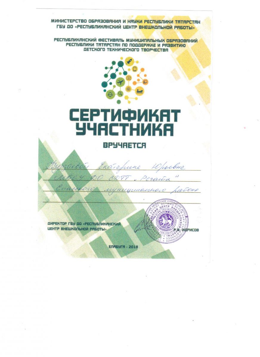 Муниципальное бюджетное образовательное учреждение дополнительного образования «Станция детского (юношеского) технического творчества «РЕГАТА»» Спасского муниципального района Республики Татарстан /Татарстан Республикасы Спас муниципаль районының өстәмә белем бирүче «РЕГАТА» балалар (яшүсмерләр) техник иҗат станциясе» муниципаль бюджет учреждениесе.