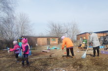 В субботнике по уборке территорий взрослым помогают и дети. 14.04.2017