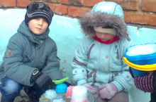 Продуктивная деятельность на прогулке "Цветные льдинки, куличики" 14.03.2014