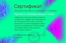 24 и 25 апреля проходил открытый образовательный онлайн-проект под эгидой исторического парка «Россия — Моя история» – школа «Наследники» в дистанционной форме, в котором принимали участие молодые люди в возрасте от 15 до 27 лет. От нашего района и республики в этом проекте принимала участие активистка Детской районной Думы МБОУ ДО «Дом детского творчества», ученица 9-го класса МБОУ «Болгарская средняя образовательная школа № 1» - Шишкина Ольга. Участники «с нуля» разрабатывали собственные проекты, которые в будущем можно будет реализовать при помощи наставников на площадке «Россия – Моя история» на ВДНХ. Команда, в которой состояла Ольга, разработала проект "Иммерсивный спектакль", который стал лучшим проектом на школе и получил финансирование, в дальнейшем планируется воплощение его в жизнь.