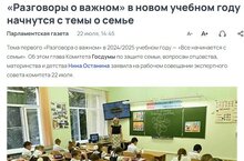 Тема первого «Разговора о важном» в 2024/2025 учебном году — «Все начинается с семьи». Об этом глава Комитета Госдумы по защите семьи, вопросам отцовства, материнства и детства Нина Останина заявила на рабочем совещании экспертного совета комитета 22 июля.