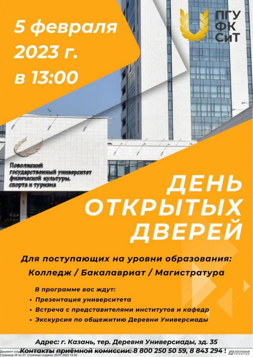 День открытых дверей в Поволжском университете физической культуры и спорта (Колледж) 27.01.2023