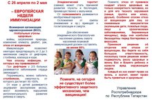 По инициативе Всемирной организации здравоохранения в Европе, в том числе в Российской Федерации и Республике Татарстан в период с 26 апреля по 2 мая 2021г. проводится Европейская неделя иммунизации (далее ЕНИ-2021).