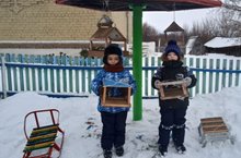 25 нче ноябрьдан 4 аперльгә кадәр район буенча "Кошларны кыш көне ашатыгыз!" акциясе уза. Без һәр елны бу акциядә бик теләп катнашабыз.Менә әтиләребез булышлыгы белән җимлекләр ясадык һәм бакчабызга элекп куйдык. Салкын кыш чорында без кошларны даими тукландырабыз.