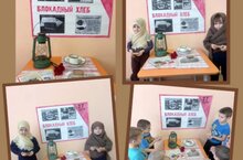 Проводились беседы с использованием иллюстраций, дети узнали о блокаде Ленинграда, наглядно познакомились с "карточками на хлеб". Дети увидели как трудно было жителям города, окруженного врагами пережить это трудное время. Много говорили о хлебе, о его роли в жизни ленинградцев в дни блокады, о жизни и занятиях детей в блокадном городе.