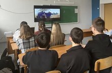 Школьники с восторгом наблюдали за кадрами взлёта ракеты «Восток‑1» и не отрывали глаз от экрана.