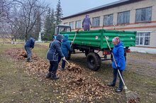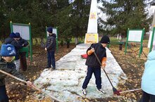 Обучающиеся привели в порядок территорию обелиска, очистили от сухих цветов и листьев
