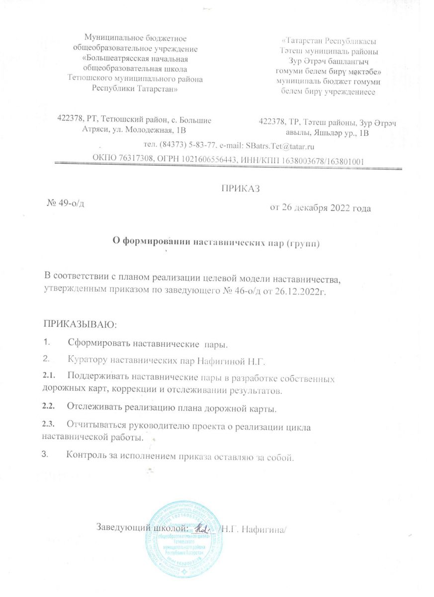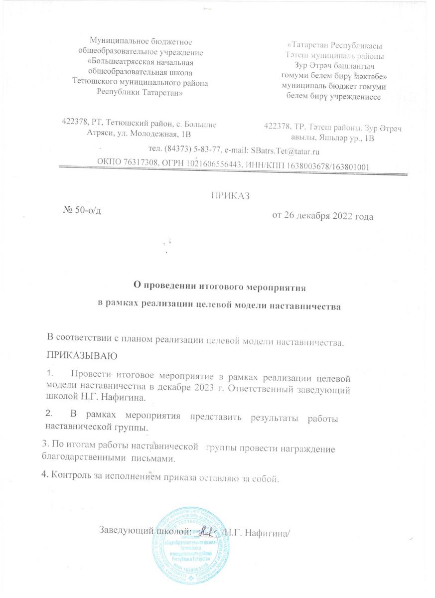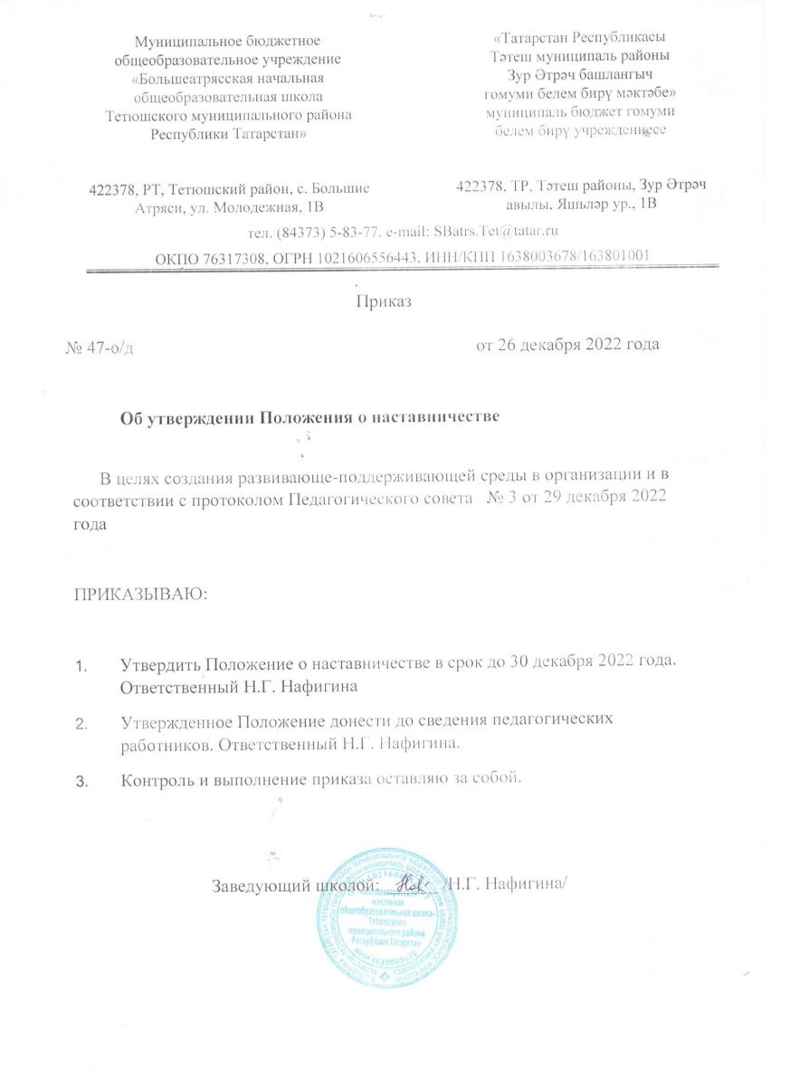 Муниципальное бюджетное общеобразовательное учреждение «Большеатрясская начальная общеобразовательная школа» Тетюшского муниципального района Республики Татарстан/Татарстан Республикасы Тәтеш муниципаль районы «Зур Әтрәч башлангыч гомуми белем бирү мәктәбе» муниципаль бюджет гомуми белем бирү учреждениесе
