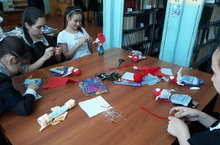 В Большетарханской школьной библиотеке для девочек 7 класса библиотекарь Султанова Р.В. провела мастер-класс по созданию русской народной куклы «Столбушки». 01.04.2019