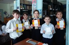 В Большетарханской школьной библиотеке вместе с учащимися начальных классов мастерили открытку в технике скрапбукинг.