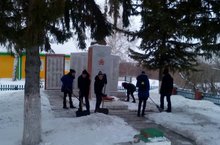 Операция «Снег» продолжается. Тимуровцы 8 класса убрали территорию обелиска после очередного снегопада. 11.01.2018