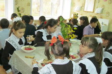 В честь 40-летия МБОУ"Большетарханская СОШ" и обед был торжественный: столы с белой скатертью, вазы с осенними красками, вкусные блюда... Праздник есть праздник, для желудка - тоже. 28.10.2016