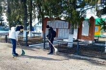 Учащиеся 10 класса МБОУ "Большетарханская СОШ" в рамках весенней недели добра по направлению "Доброе дело в моём селе" провели уборку территории обелиска.