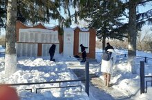 Участники Движения Первых и юнармейцы Большетарханской СОШ начали активную работу зимой по сохранению обелиска Великой Отечественной войны 03.02.2026