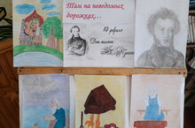 Ко дню памяти великого русского поэта А. С. Пушкина библиотекарь вместе с ребятами организовали выставку рисунков под названием " Там на неведомых дорожках... "
