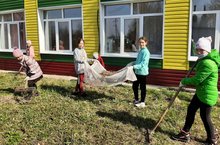 30.04.21 учащиеся и работники школы дружно вышли на субботник по очистке территории школы.