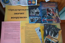 В Большетарханской школьной библиотекев рамках месячника Гражданской обороны оформлена выставка «Предупрежден - значит вооружен», где представлены энциклопедии, памятки, методики безопасного поведения при условиях ЧС и на различных объектах. 09.10.2020