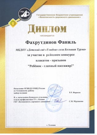 Муниципальное бюджетное дошкольное образовательное учреждение «Детский сад «Улыбка» села Большая Турма» Тетюшского муниципального района РТ