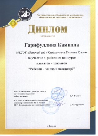 | Короткое название: | МБДОУ "Детский сад "Улыбка" села БольшаяТурма" |
