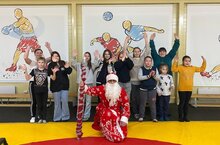 Бүген безнең мәктәптә укучылар өчен Яңа ел бәйрәме узды. Өлкән сыйныф укучылары Яңа ел әкиятен күрсәттеләр, анда, әлбәттә, мәхәббәт һәм яхшылык җиңде. Кыш бабай белән Кар кызы артистларга бүләкләргә һәм комплиментларга бик юмарт булдылар!