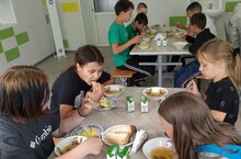 Гадәттәгечә, безнең лагерьда көн күтәренке зарядка һәм тәмле иртәнге аш белән башланды! Бүгенге көн “Кояшкай” мәктәп яны лагеренда янгын куркынычсызлыгына багышланган. Тәрбиячеләр балалар белән янгын куркынычсызлыгы кагыйдәләре турында әңгәмә үткәрделәр, ашыгыч хезмәтләрнең телефон номерларын искә төшерделәр, янгынны сүндерү өчен нинди чаралар кулланылуы турында сөйләделәр. Аннары балалар өчен янгын куркынычсызлыгы, пешкәндә беренче ярдәм күрсәтү турында викторина үткәрделәр. Бу көн балалар өчен бик кызыклы һәм актив булды!