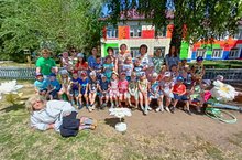 Утром по приходу в детский сад взрослые и дети с удовольствием приняли участие в фотосессии! В результате получились - красивые, яркие, очень классные фотографии на память о светлом празднике! Площадка, где проходят все мероприятия с детьми летом, была украшена ромашками, изготовленными заблаговременно детьми. Чуть позже прошло праздничное развлечение для детей и взрослых. В весёлом досуге принимали участие дети, мамы, бабушки. Взрослые вместе с детьми, играли в весёлые игры «Собери ромашку», «Запеленай малыша», «Ковёр самолёт» и другие.