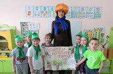 В детском саду отметили «День Эколят». В этот день к воспитанникам подготовительной группы пришёл в гости эколёнок Шалун и познакомился с участниками экобригады «Защитники природы». Вместе с ребятами он нарисовал плакат «Берегите природу». Ребята рассказали ему о своей работе по защите окружающей природы показав рассаду цветов для озеленения детского сада. Шалун научил ребят правильно пикировать рассаду, рассказав интересные факты из жизни растений, пообещав ребятам помощь в посадки цветов на участке. Вместе с весёлыми эколятами ребята нашего детского сада познают премудрости экологических знаний в течении всего года и этот день они с удовольствием провели с Шалуном.
