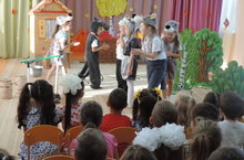 Спектакль Г.Тукая «Коза и баран». 14.11.2018 Проблема национального воспитания в настоящее время является очень важной. В детском саду «Березка» города Тетюши» детьми подготовительной группы был показан спектакль на татарском языке по сказке Г.Тукая «Коза и баран» для малышей. Цель спектакля: приобщать детей к татарскому национальному искусству и фольклору; обогатить новыми впечатлениями, развивать инициативу, творческие способности, эстетический вкус. Хәзерге вакытта милли тәрбия бирү проблемасы бик мөһим.Тәтеш шәһәренең “Каенкай” балалар бакчасында мәктәпкәчә яшьтәге балалар, кечкенәләр өчен Г.Тукайның “Кәҗә белән сарык”әкиятен татарча күрсәттеләр.Театрның максаты:балаларның татар милли сәнгатенә һәм фольклорына омтылышын,иҗади мөмкинлекләрен, эстетик матурлыкларын үстерү.