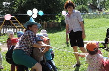 День здоровья 11.07.2017 11 июля в детском саду «Берёзка» посвящено Дню Здоровья. Цель данного мероприятия: популяризация физической культуры и спорта среди дошкольников, пропаганда здорового образа жизни и воспитание у детей стремления быть здоровыми. Этот день прошел необыкновенно весело, все воспитанники прибывали в отличном настроении. Дети проявили быстроту, ловкость, выносливость, координацию движения, показали и командную сплоченность, и спортивный азарт, и волю к победе в играх «Собери овощи и фрукты», «Баба Яга в тылу врага», «Репка», «Веселые Петрушки», «Солнышко» и др. Все участники соревнований получили заряд бодрости, много положительных эмоций.