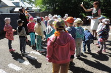 Экскурсия дошкольников в пожарную часть 29.06.2017 Для детей пожарный, спасатель – люди героические, так было и в былые годы, и сегодня. Они спасают из огня людей, встают на пути у разрушения. В детском саду проводится много бесед о правилах безопасности, что нельзя играть со спичками, с огнем, одним уходить из дома, купаться. Но совсем по-другому детьми усваиваются правила пожарной безопасности, безопасности на воде, когда об этом рассказывает человек, который непосредственно относится к этой работе. С этой целью, 29 июня дети в возрасте 5-7 лет посетили пожарную часть. Детей тепло встретил целый караул пожарных. Веселым гулом ребячьих голосов наполнилось пожарное депо. Старший государственный инспектор по маломерным судам Ананьев А.В. показал детям катер для спасения на воде, рассказал о правилах купания, для чего необходим спасательный жилет и круг. Показал, как правильно пользоваться спасательным кругом. Ребята пришли в восторг оттого, что примерили на себе спасательные жилеты. Далее детей провели в гараж, где показали, чем вооружен пожарный для борьбы с огненной стихией, рассказали, для чего служит тот или иной предмет из многочисленного пожарного снаряжения. И, конечно же, ребят, заинтересовала сама пожарная машина, которая выехала во двор к детям. Дошкольники мгновенно обступили её. Командир 4-го караула Замалетдинов Ф.Ф. рассказал про машину, показал детям, как и чем она оборудована. И предел мечтаний каждого ребенка, это посидеть в пожарной машине, что и предоставили работники ПЧ. В завершение экскурсии всем детям были розданы памятки по мерам пожарной безопасности.