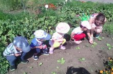 В рамках тематической урожайной недели в ранней – первой младшей группе проводилась беседа «Летний урожай». В течение недели к ребятам приходили гости: ежик и лисичка. Мы лепили грибочки, рисовали с помощью овощей, играли в дидактические игры «Овощи и фрукты», «Собери урожай», совершили экскурсию на огород.