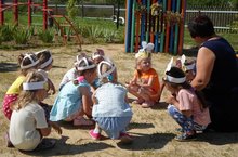Сегодня мы с детьми средней группы играли подвижные в игры «Медведи и пчелы», «Охотники и утки». Дети развивали умение бегать в разных направлениях, издавали звуки жужжания пчелы, развивали быстроту реакции, ловкость движений. Детям игры очень понравились.