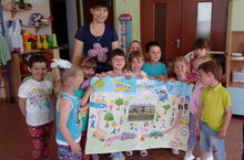В целях уточнения и закрепления знаний детей о правилах безопасного поведения на дороге и правил дорожного движения. 21 июня с ребятами средней группы «Непоседы», в ходе совместной игровой деятельности на бумаге возник садик «Колосок» с дорогой и транспортом. Он был сделан в технике «коллаж».