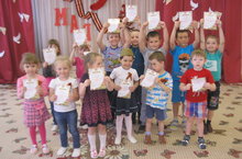 Сегодня во 2младшей/средней, старшей/подготовительной группах прошло спортивное развлечение "Победа будет за нами". Целью данного мероприятия было продолжение знакомства детей с героическим прошлым нашего народа, воспитание чувства уважения к защитникам нашей Родины. Спортивная часть соревнования включала в себя эстафеты, где дети могли проявить ловкость, быстроту реакции. А завершить наше спортивное развлечение хочется словами:
