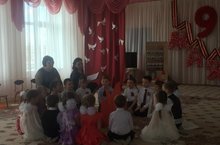 Почетными гостями мероприятия стали дети войны Хусаинова З.Г. и Ахматгилеева Р.Ф. , ветераны педагогического труда, проработавшие в детском саду, бабушки и дедушки наших воспитанников. Дети подготовительной и старшей групп читали стихи и пели знаменитые песни военных лет, танцевали под всем известные мелодии. Вместе с детьми выступали и воспитатели, исполнившие песню «Синий платочек». Прекрасным украшением праздника стало выступление дипломантки вокально-эстрадного конкурса «Созвездие», ученицы 10 класса ТСОШ № 1 Насретдиновой Лианы. Присутствующие в зале почтили память о погибших минутой молчания. Своим гостям ребятишки приготовили подарки: открытку в виде фронтового письма и цветок, сделанный своими руками.