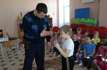 Сегодня наш детский сад посетили педагоги - организаторы Центра Форпост Тарасова Наталья Николаевна и Рамазанова Фарида Абдулгафаровна. Они провели с детьми викторину по правилам дорожного движения «Дорожная азбука». Ребятишки с удовольствием отвечали на вопросы, выполняли предлагаемые задания и играли в игры. В завершении викторины все вместе посмотрели мультфильм по правилам дорожного движения из серии «Белка и Стрелка – озорная семейка». После викторины с детьми побеседовали инспектор по пропаганде БДД, лейтенант полиции Алеев Артур Ильдарович и инспектор ДПС, младший лейтенант Садыков Азат Фиркатович. Встреча получилась интересной и познавательной. В подарок гости оставили детям световозвращающие повязки и пожелали дальнейших успехов в изучении дорожной азбуки.