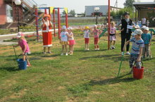 29.08.16.в нашем саду прошло тематическое мероприятие - «День Республики». Это мероприятие мы решили начать с гимна республики Татарстан. После такого торжественного начала дети с удовольствием начали рассказывать про нашу Родину. Мы вспоминали, какие народы проживают в нашей Республики, после чего играли в национальные игры. Конечно не обошлось и без любимой татарской игры - «Мәлике».