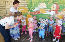 27.07.16. у нас прошло музыкальное развлечение «В гостях у Петрушки». Дети радостно встретили этого героя и с удовольствием отправились в веселое спортивно-увлекательное путешествие . Под веселую музыку они с радостью проходили все конкурсы и эстафеты, а в конце мероприятия Петрушка решил сделать фотографию на память, чтобы унести с собой яркие улыбки наших детишек.