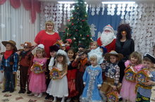 24 декабря 2015 года в 1 младшей группе было проведено праздничное новогоднее мероприятие «Дед Мороз и Снегурочка в гостях у ребят». Воспитатели совместно с музыкальным руководителем и младшими воспитателями подготовили новогоднюю сказку для ребят, в которой были и медведь, зайчик, петрушка, Дед Мороз и Снегурочка. Дети принимали активное участие в празднике: рассказывали новогодние стихотворения, пели песни, танцевали. Активное участие в подготовке новогодних костюмов для детей принимали и родители. Было очень весело. Дети с интересом следили за ходом сказки. В конце праздника Дед Мороз раздал детям сладкие подарки, чему дети были очень рады.