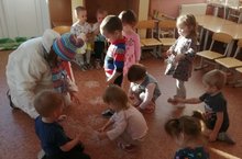 В группе малышей «Малышарики» прошло музыкальное развлечение «Ладушки в гостях у бабушки». В гости к детям приходила бабушка, она спела и инсценировала песенку «Ладушки». Поиграла с ребятками в музыкальные игры: «Кот и мышки», «Птичка и птенчики» и потанцевали с погремушками под песню «Зашагали ножки».