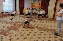Сегодня в подготовительной группе прошло спотривное развлечение "Осенние приключения". Физкультурный досуг проводился с целью создать у детей эмоционально-положительное, приподнятое настроение; активно использовать приобретенный двигательный и импровизированный опыт. Предоставить каждому ребенку возможность испытать удовольствие от выполняемых им и другими детьми движений, а также радость от успехов товарищей.