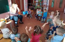 В подготовительной группе прошёл Праздник мяча". Дети узнали, что мяч появился очень давно, в глубокой древности. Сначала мяч плели из травы и пальмовых листьев, затем изготавливали из плодов деревьев и шерсти животных, позже стали делать из резины. Ребята закрепили виды спорта, где используется мяч и сами приняли активное участие в спортивных эстафетах. -