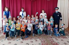 Сегодня в гостях у воспитанников детского сада "Колосок" побывали инспектора ГИБДД: Волков С. В., Мингалеева А. Р., Мурзакова С. М. и Вахитова Л. И. Целью этой встречи было закрепление знаний о правилах дорожного движения, профилактика детского дорожно-транспортного травматизма. Детям было предложено просмотреть мультфильм "Знатоки дорожного движения". В конце встречи всем ребятам инспектора ГИБДД подарили светоотражающие фликеры.